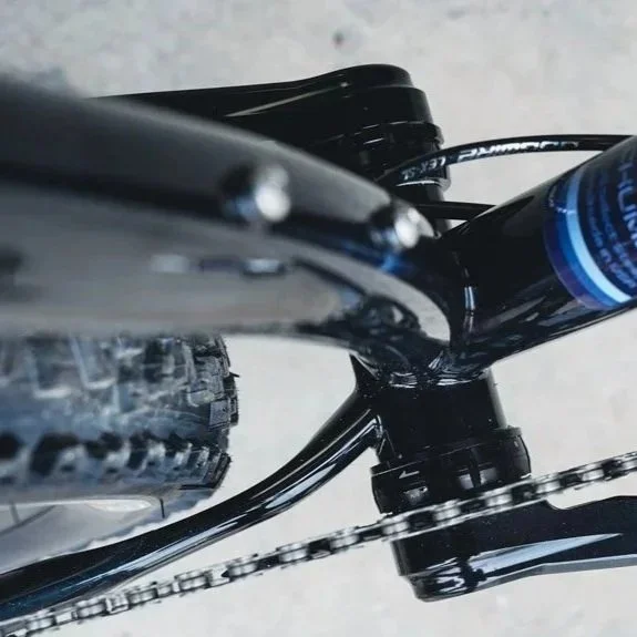 Cable Routing: Standard cable routing goes under the down tube via PMW bolt on cable guides and then onto the chain-stays. (or options for custom routing)
